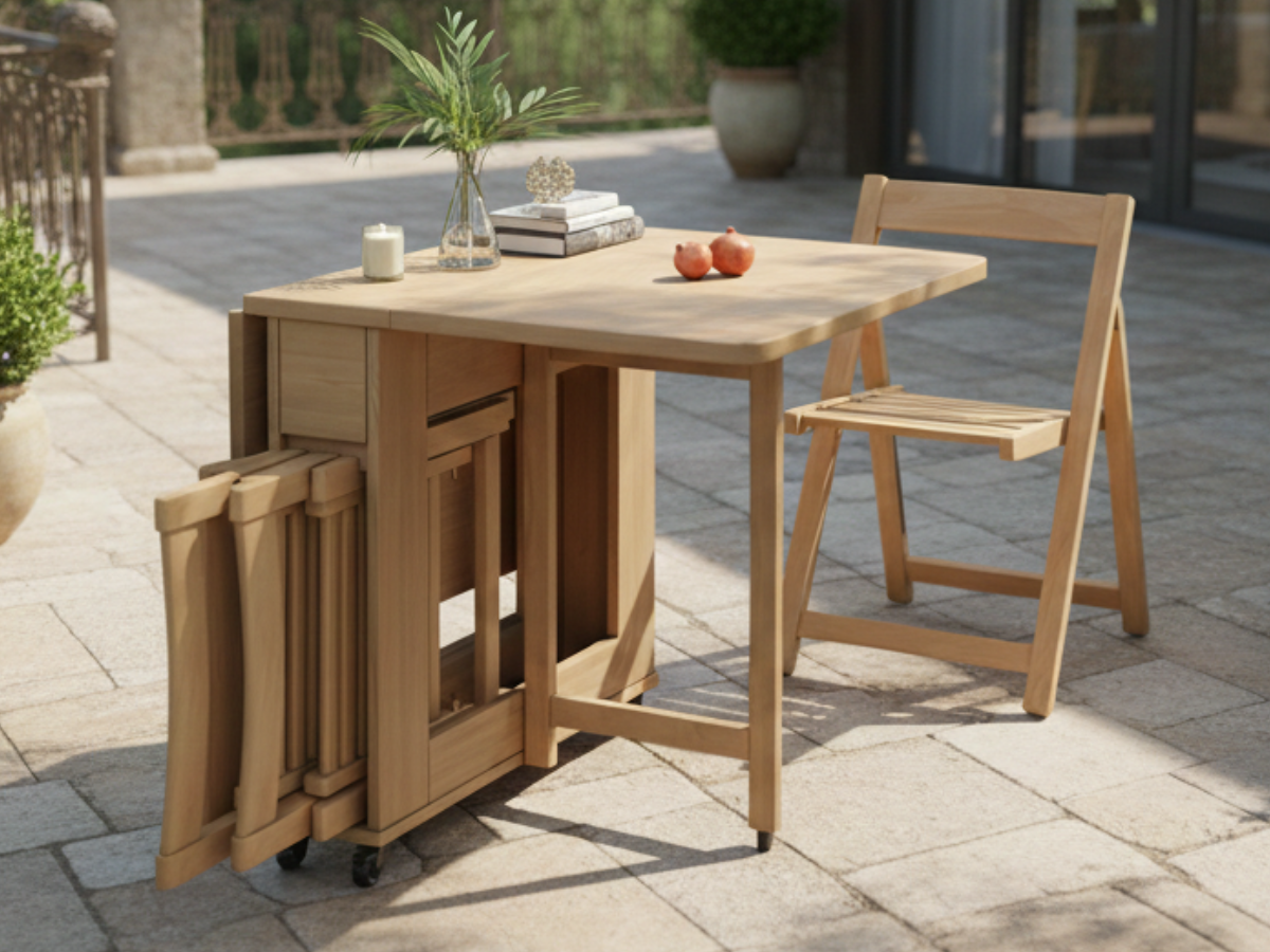 Las últimas novedades se centran en mobiliario adaptable y transformable, como mesas extensibles, soluciones multifuncionales para interior y exterior, muebles que cambian de uso según el momento del día y sistemas pensados para optimizar el espacio.