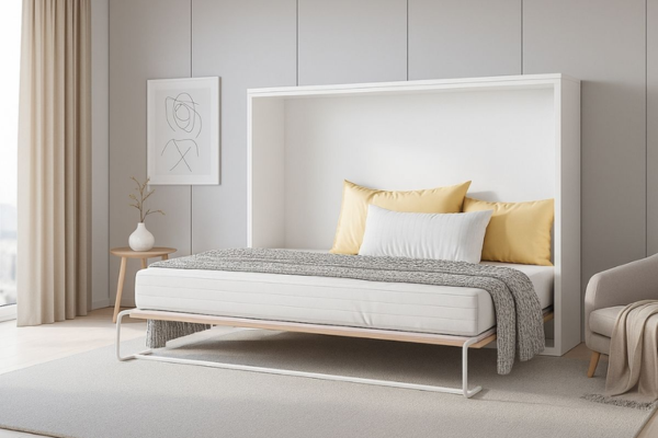La Cama Horizontal Abatible Roma es la opción perfecta para maximizar el espacio en habitaciones pequeñas. Su sistema de apertura horizontal es fácil de usar y seguro, proporcionando una solución práctica para quienes necesitan una cama funcional que desaparece cuando no está en uso.
